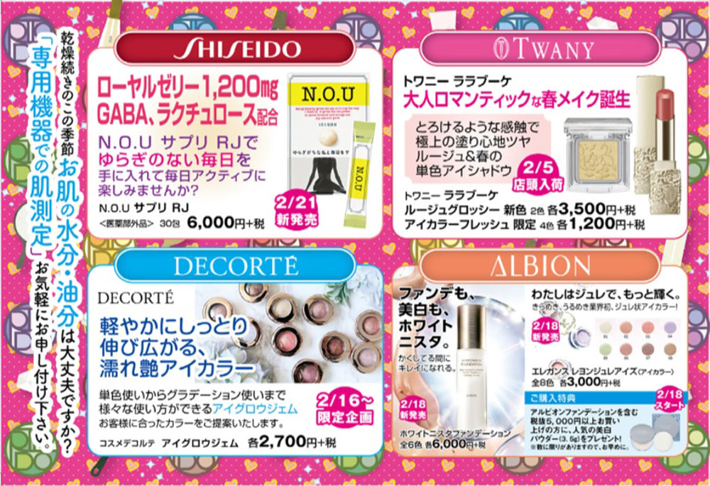 沢山のブランドから貴女に合う化粧品を一緒に探してみませんか?