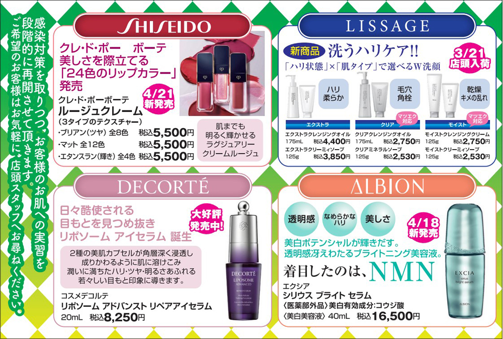 沢山のブランドから貴女に合う化粧品を一緒に探してみませんか?